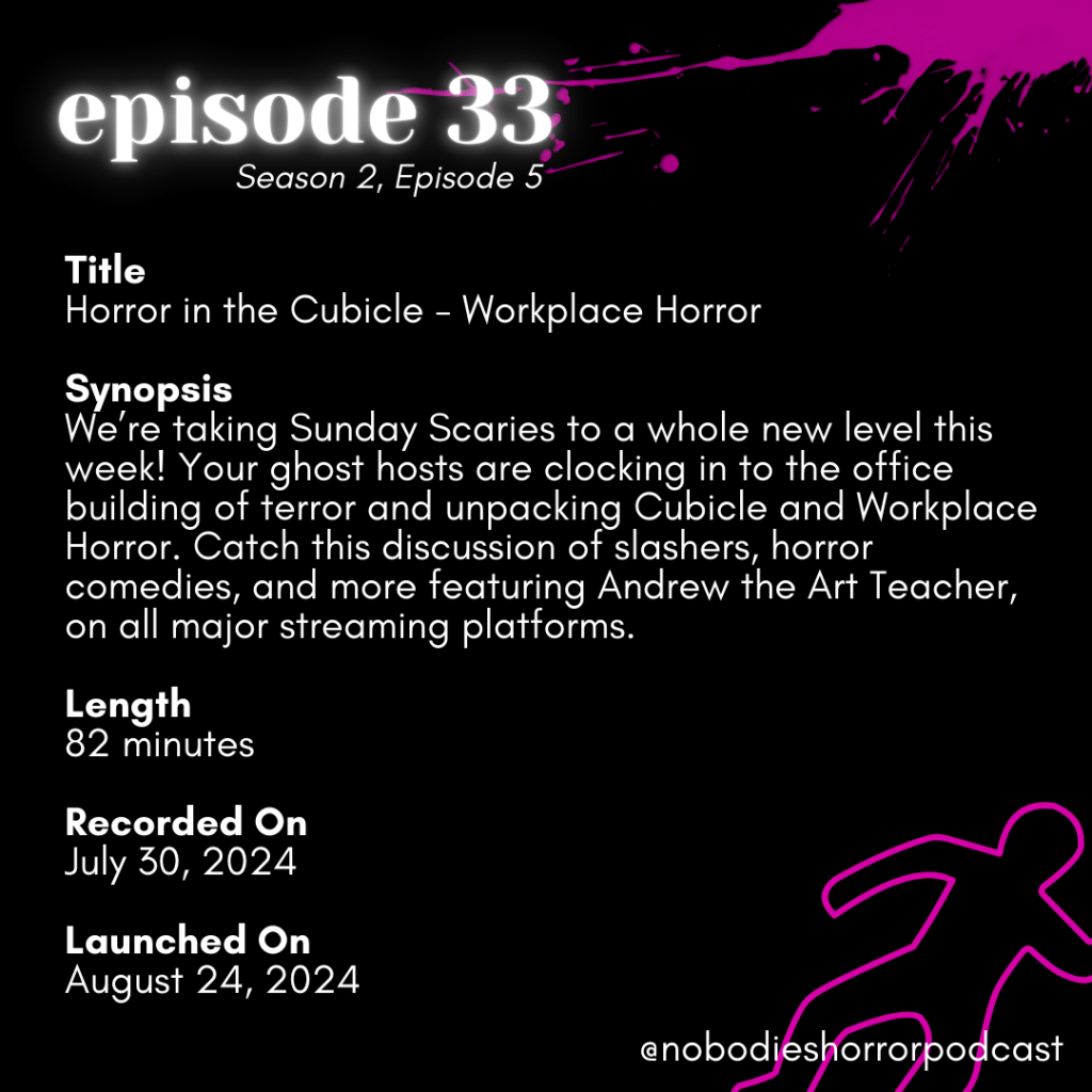 - Check out our instagram antics and drop a follow @nobodieshorrorpodcast.