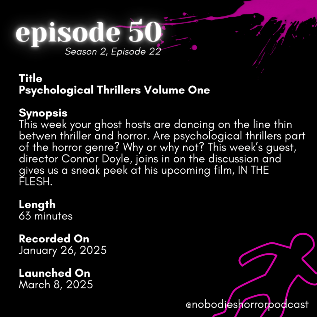 - Check out our instagram antics and drop a follow @nobodieshorrorpodcast.
