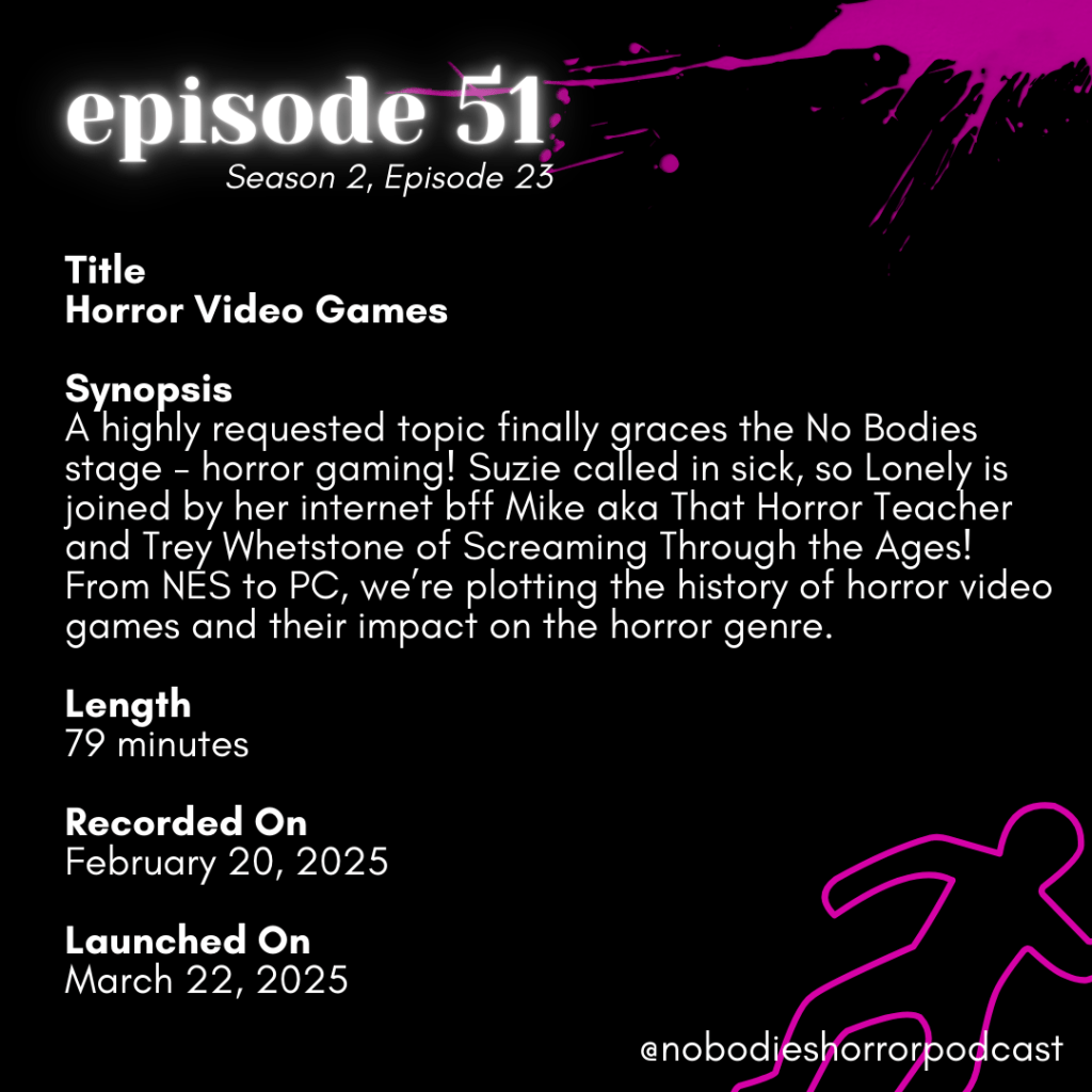 - Check out our instagram antics and drop a follow @nobodieshorrorpodcast.