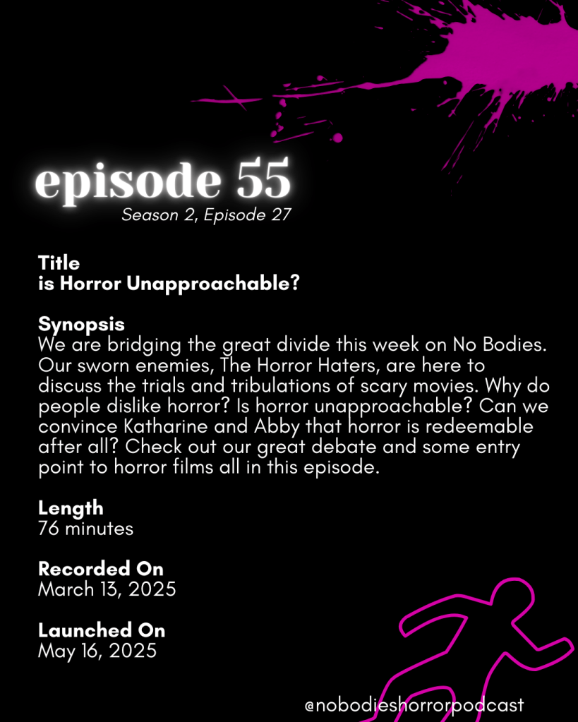 - Check out our instagram antics and drop a follow @nobodieshorrorpodcast.