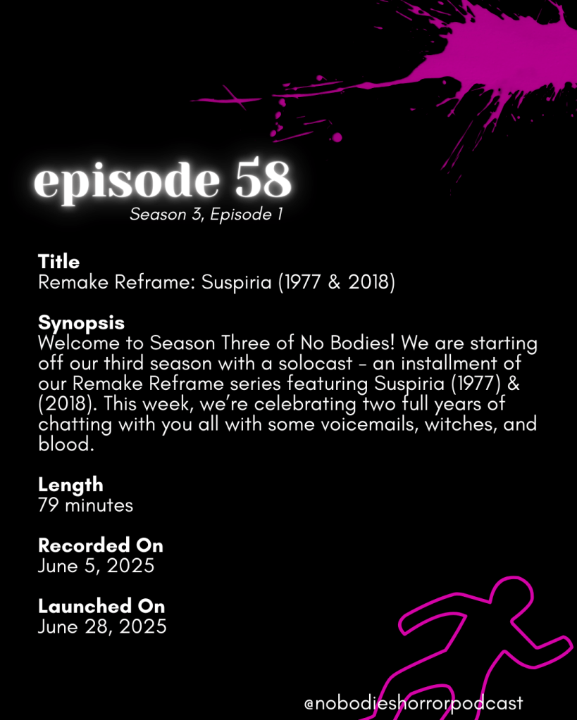 - Check out our instagram antics and drop a follow @nobodieshorrorpodcast.